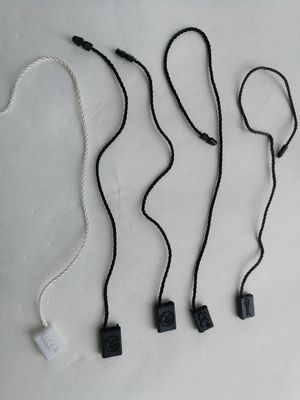 Wir produzieren kundenspezifische weiße Folie Logo Black Plastic Tags Small, den Plastikhangtags Enden-Schnur aussondern,